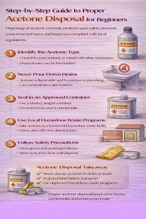 For moderate to large amounts of acetone, household hazardous waste collection sites or professional disposal services are the safest and most compliant option. These facilities are designed to handle flammable solvents safely.